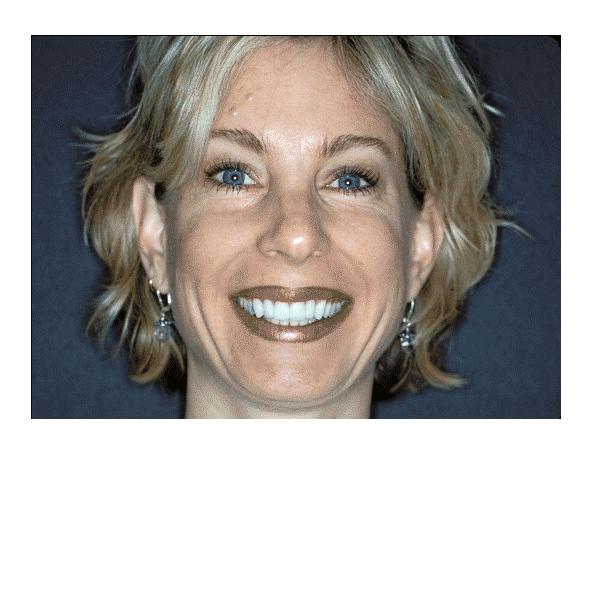 Here, we see the results of a precision therapeutic extraction and gingival reconstruction with three unit porcelain bridge and veneers.